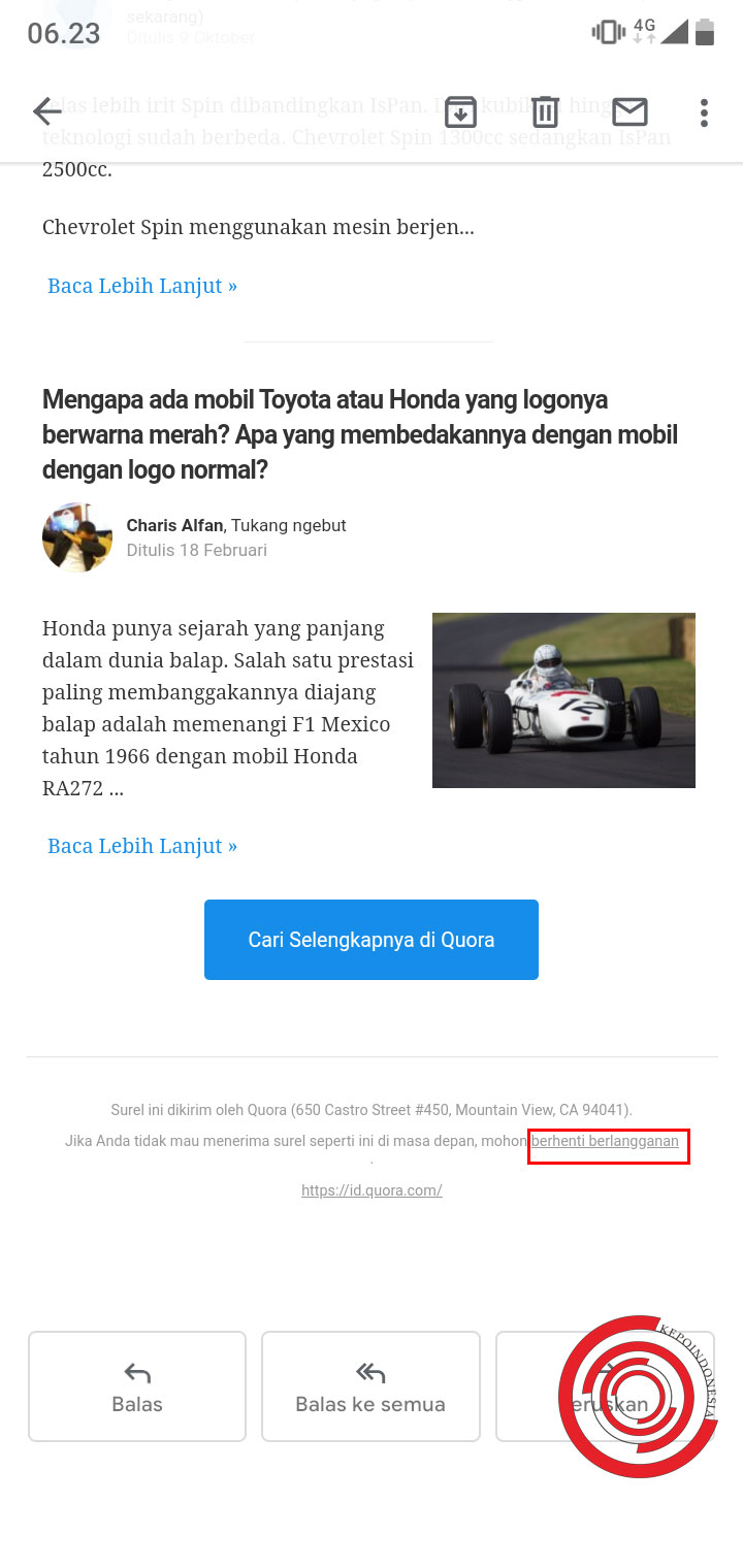 1. Langkah pertama silakan kalian buka email dari Quora.com, selanjutnya silakan gulir sampai di bagian paling bawah